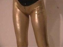 Restrained in Golden Catsuit