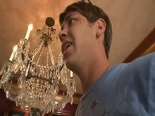chubby guy with big cock getting a handjob bdsm