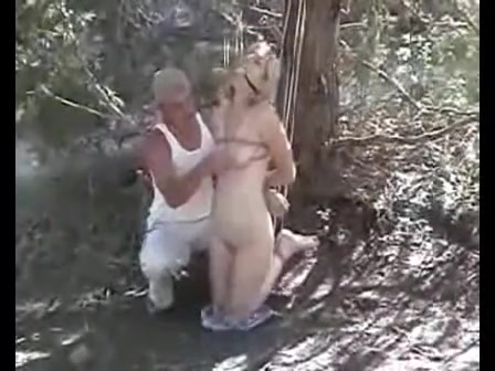 oral sex and hogtie in the woods