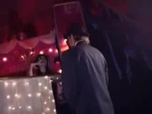 Domme Tests Naked Male Slave With